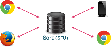 WebRTC SFU (Selective Forwarding Unit ) は P2P での通信とは異なり、音声や映像を「サーバー経由」で配信する技術の一つです。 つまり、SFU というサーバーが、配信者に代わって音声や映像を複数の視聴者に配信してくれる仕組みです。そのため視聴者の数が増えても配信者自身の回線や端末に高い負荷がかかることはなく、一度に多くの視聴者へ音声や映像をリアルタイムに配信することができます。